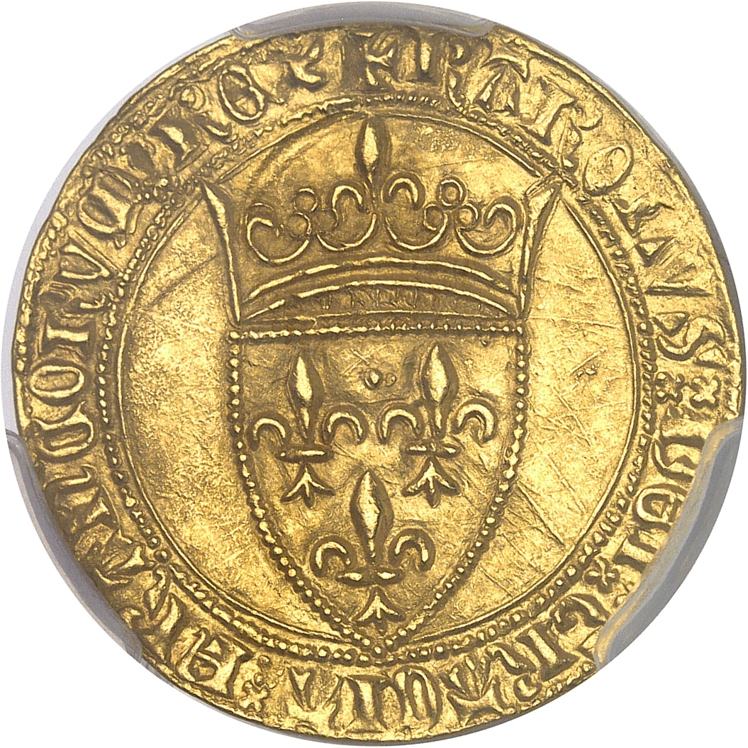 - FRANCE / ROYAL Charles VI (1380-1422). Écu d’or à la couronne, 1ère émission ND (1385-1388), Atelier indéterminé.