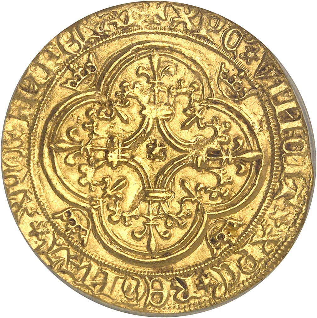 Rv. + XPC* VINCIT* XPC* REGNAT* XPC* INPERAT. Croix fleurdelisée et feuillue, avec étoile dans un losange curviligne en cœur, le tout dans un quadrilobe cantonné de quatre couronnelles.
