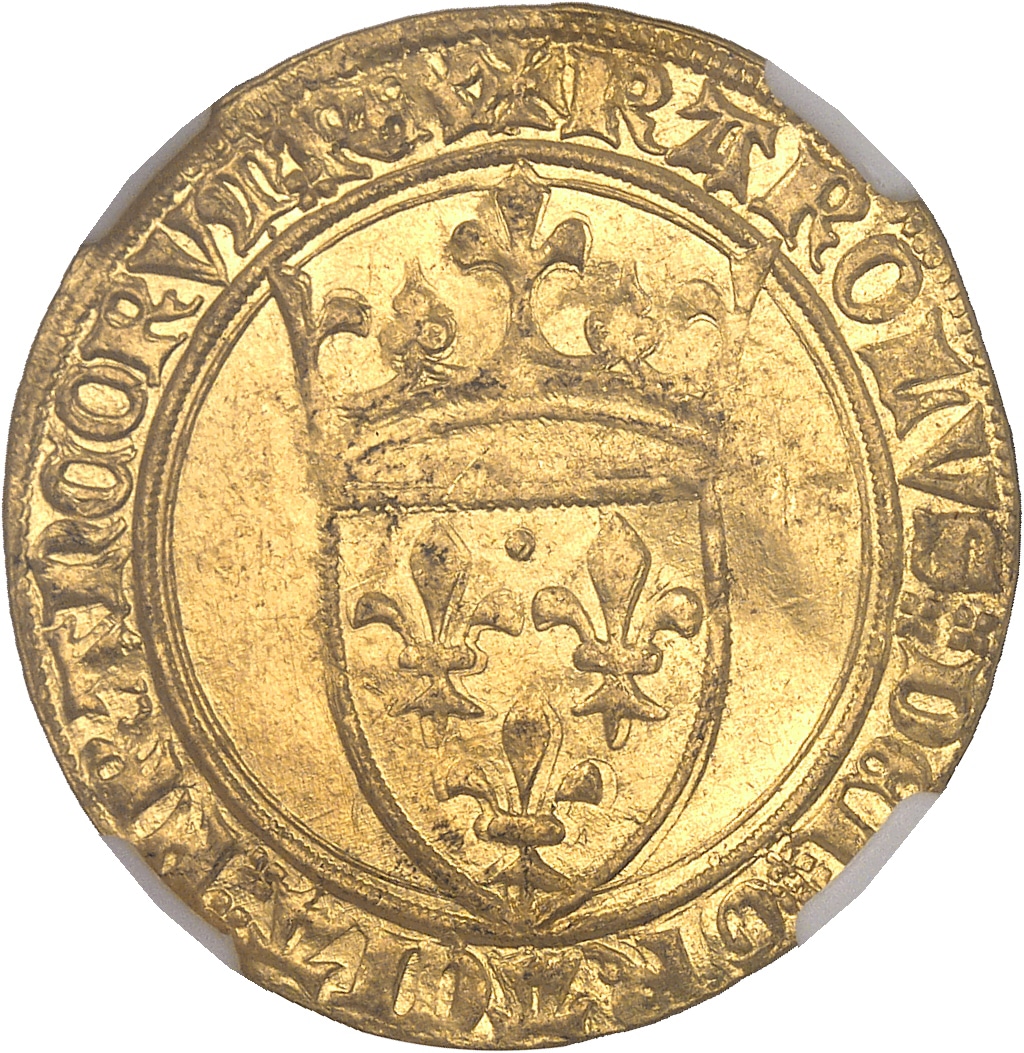 - FRANCE / ROYAL Charles VI (1380-1422). Écu d’or à la couronne, 4e émission (variété aux trèfles pointus) ND (1394-1411), Troyes.