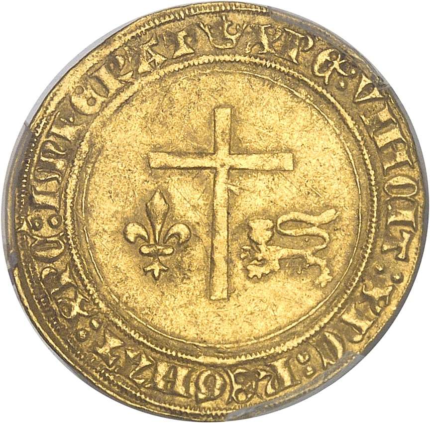 - FRANCE / ROYAL Henri VI d'Angleterre (1422-1453). Angelot d’or ND (1427), couronne, Paris.