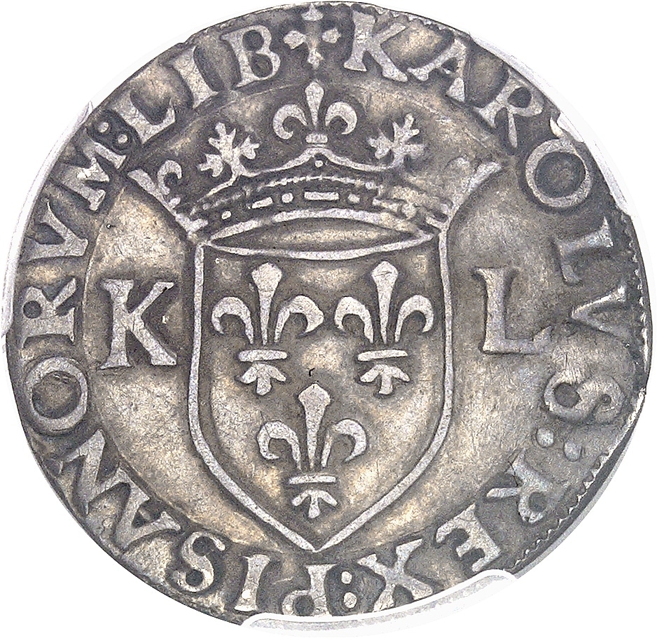 Av. + KAROLVS: REX: PISANORVM: LIB. Écu de France couronné accosté de K - L.