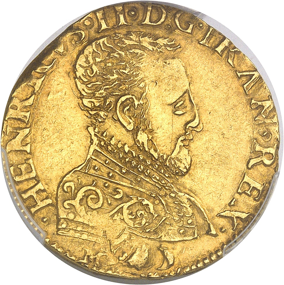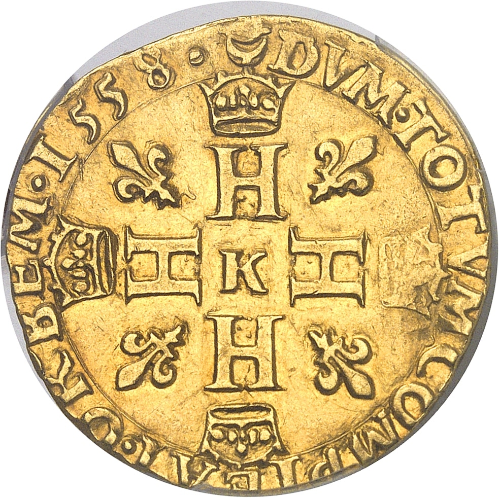 - FRANCE / ROYAL Henri II (1547-1559). Double Henri d’or, 2e type 1558, K, Bordeaux.