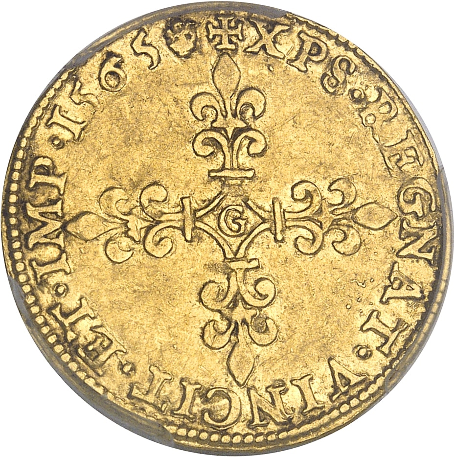- FRANCE / ROYAL Charles IX (1560-1574). Écu d’or au soleil 1565, G, Poitiers.