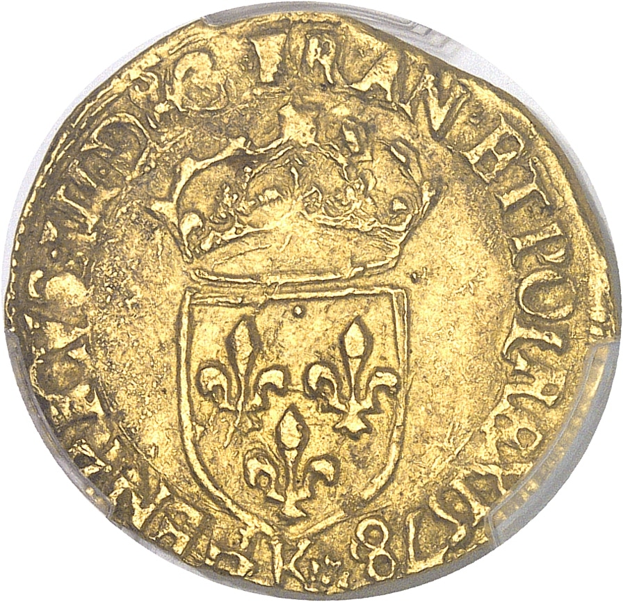 - FRANCE / ROYAL Henri III (1574-1589). Écu d’or au soleil 3e type 1578, K, Bordeaux.