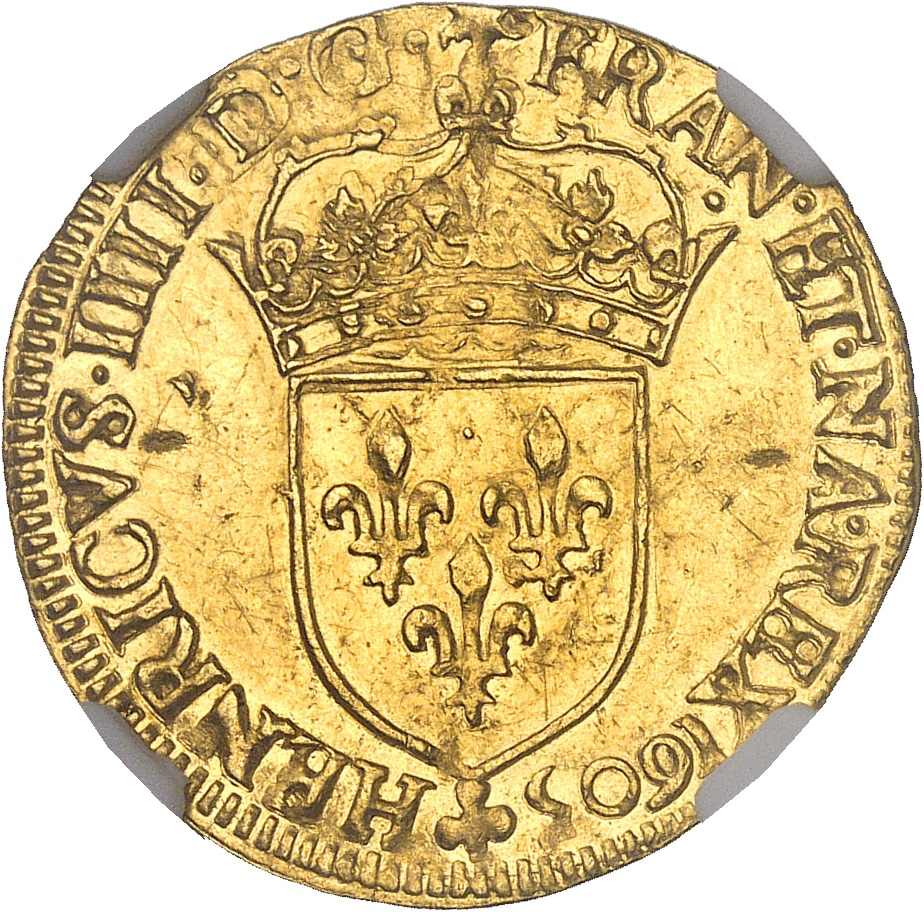 - FRANCE / ROYAL Henri IV (1589-1610). Écu d’or au soleil, 1er type 1605, A, Paris.