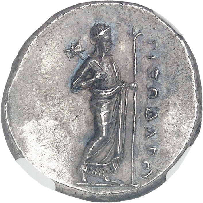 NGC AU* 5/5 4/5 Fine Style (drachm) (8558296-001). Frappe centrée, en haut relief et de très beau style, avec les détails présents. Délicate patine aux reflets bleutés au droit. Superbe à Fleur de coin.