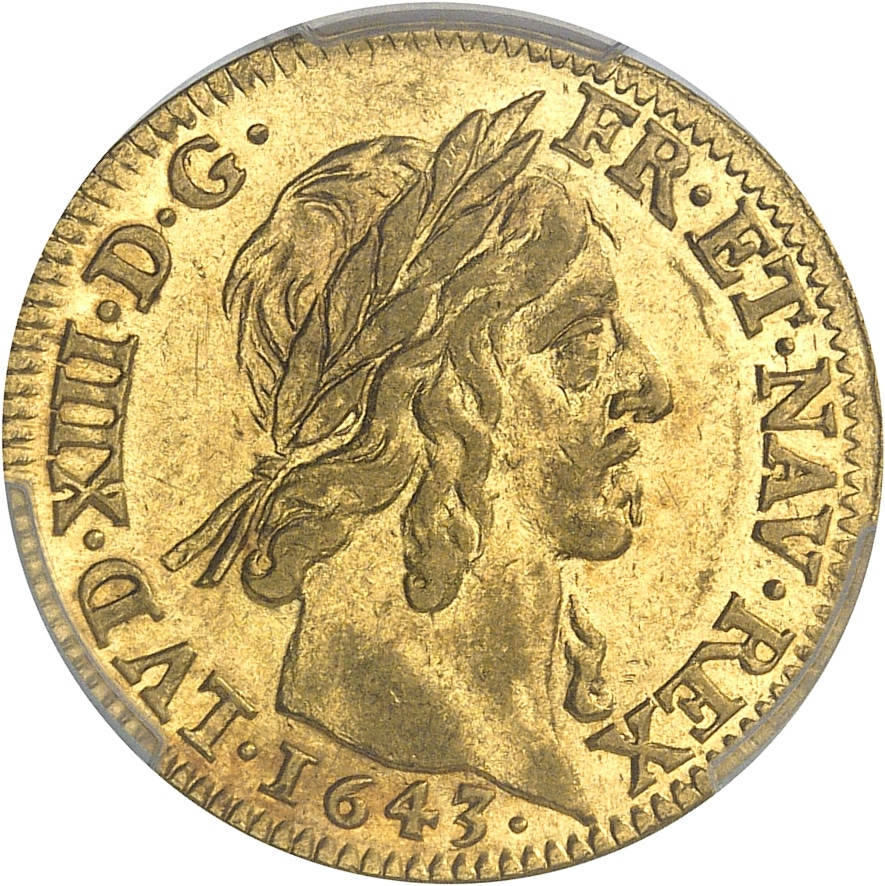 - FRANCE / ROYAL Louis XIII (1610-1643). Louis d’or à la mèche mi-longue et + 1643, A, Paris.