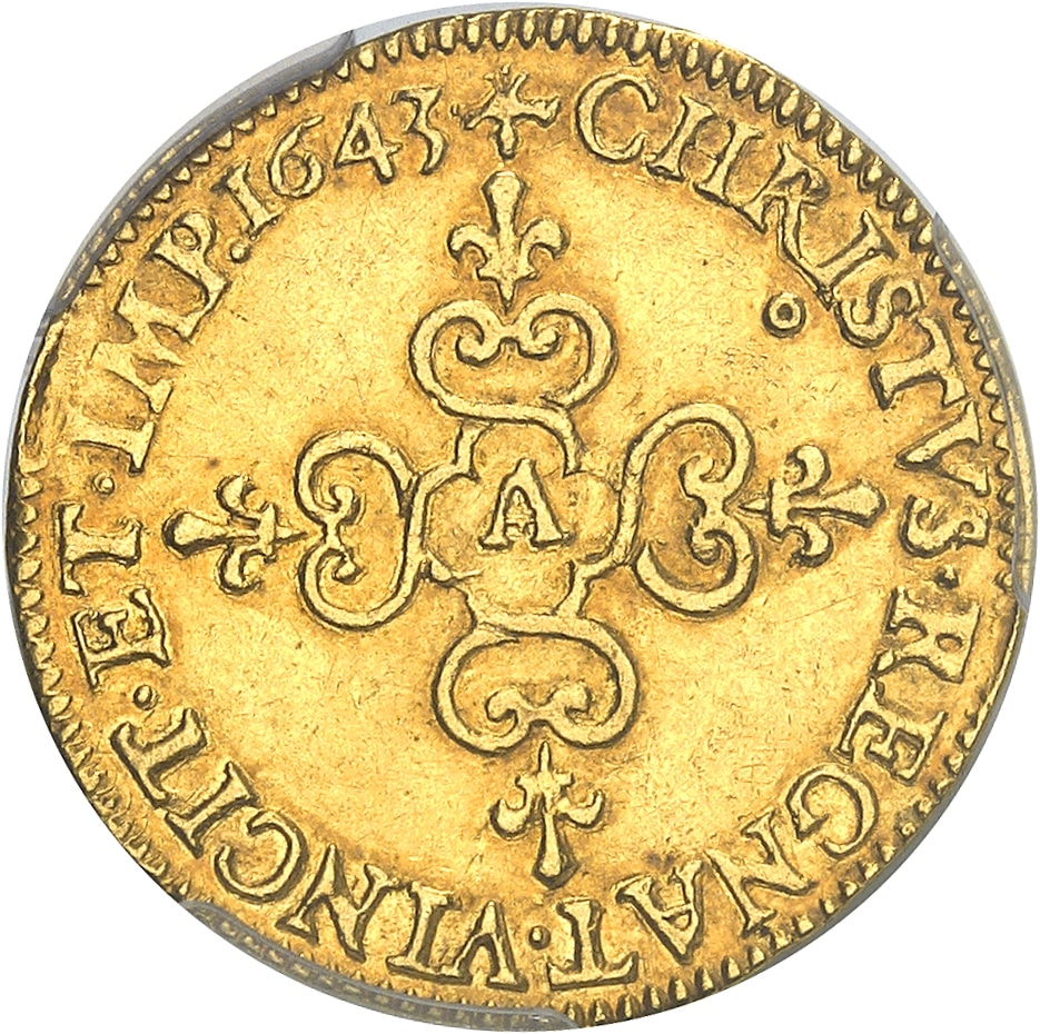 - FRANCE / ROYAL Louis XIV (1643-1715). Écu d’or au soleil 1643, A, Paris.