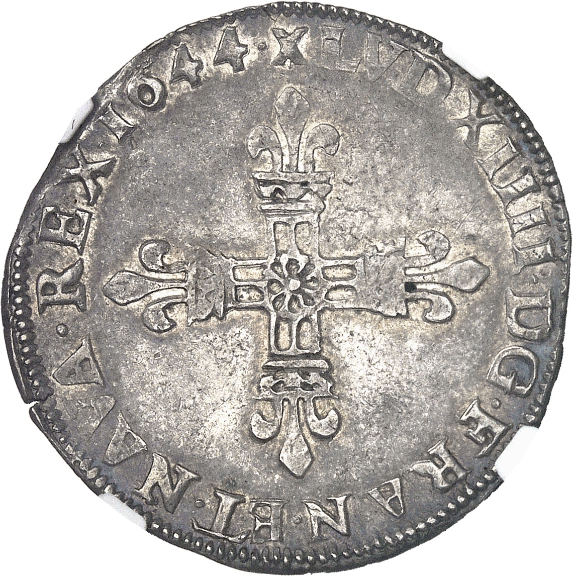 Av. (à 12 h) (différent) LVD. XIIII. D: G. FRAN. ET. NAVA. REX. (date). Croix fleurdelisée avec quadrilobe en cœur.