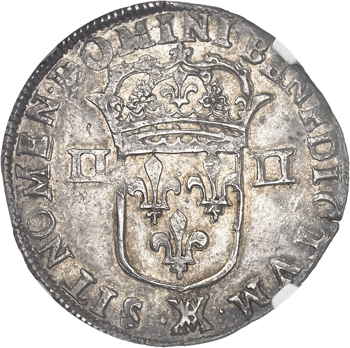 Rv. (à 6 h) SIT. NOMEN. DOMINI. BENEDICTVM. Écu de France couronné, accosté de II - II ; au-dessous (atelier).