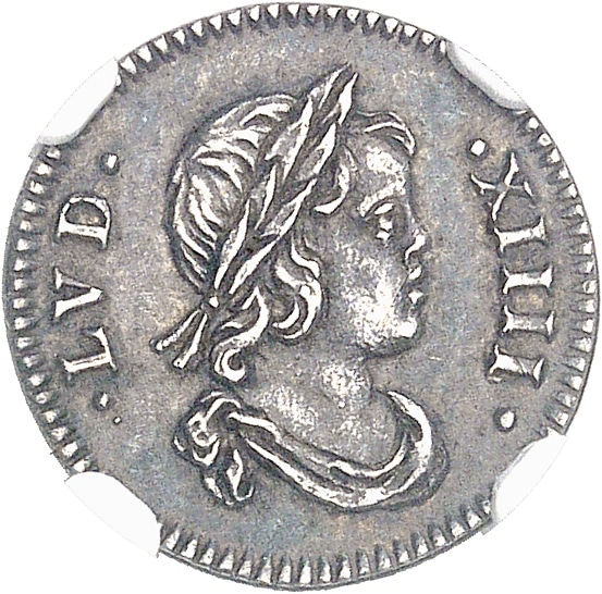 Av. .LVD. - .XIIII. Buste du Roi à droite, les cheveux courts, lauré et drapé.