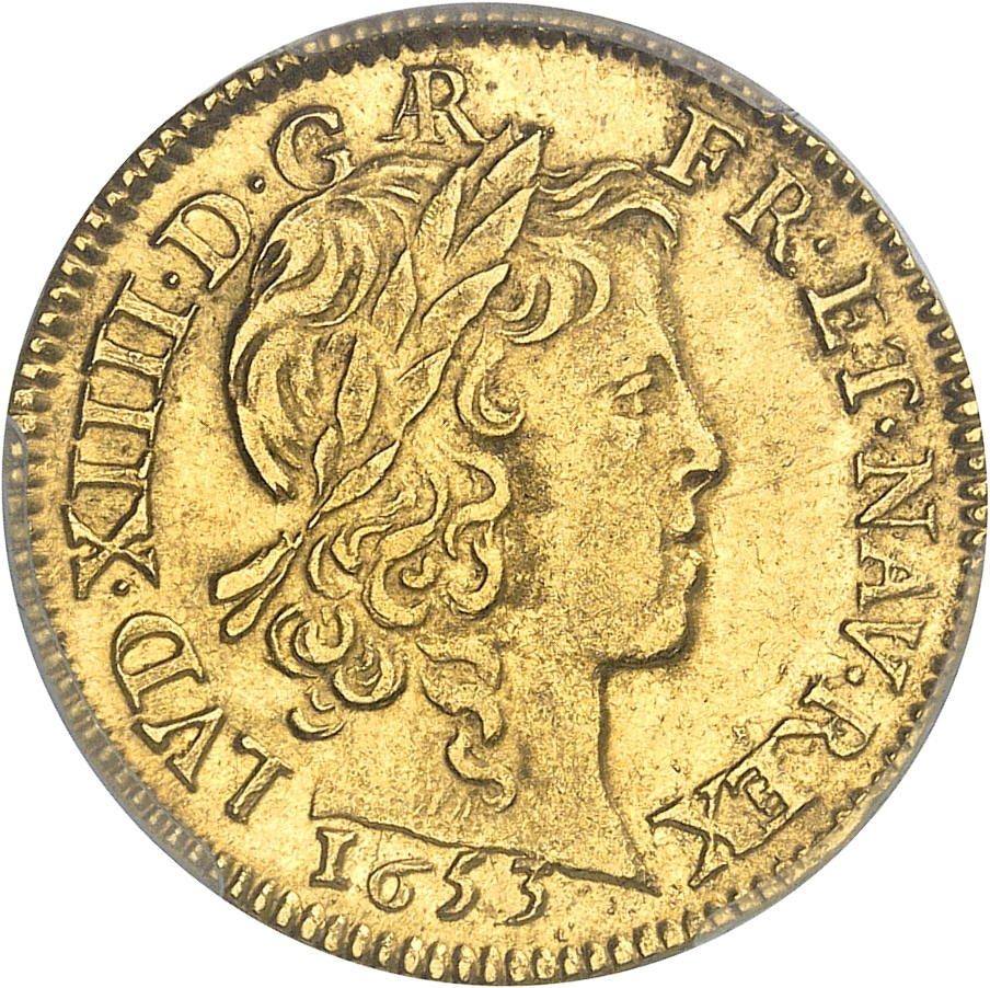 - FRANCE / ROYAL Louis XIV (1643-1715). Louis d’or à la mèche longue 1653, AR, Arras.