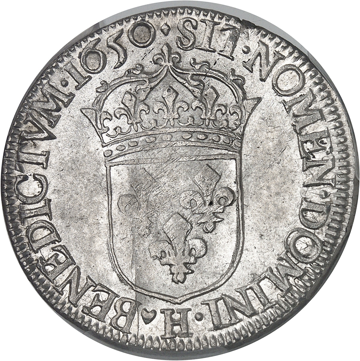 - FRANCE / ROYAL Louis XIV (1643-1715). Demi-écu à la mèche longue 1650, H, La Rochelle.