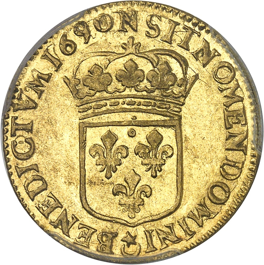 - FRANCE / ROYAL Louis XIV (1643-1715). Louis d’or à l’écu 1690, N, Montpellier.