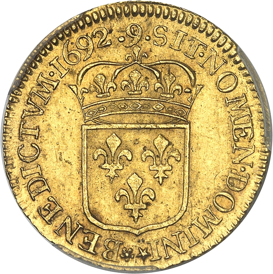 - FRANCE / ROYAL Louis XIV (1643-1715). Louis d’or à l’écu 1692, 9, Rennes.