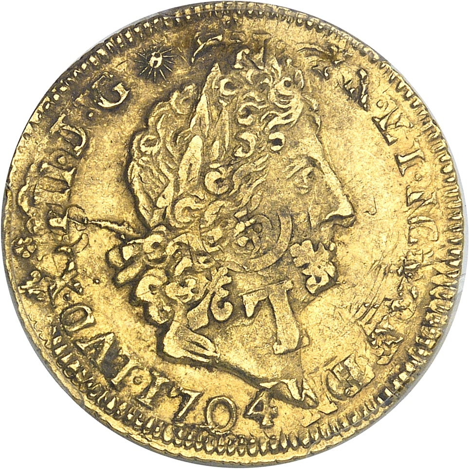 - FRANCE / ROYAL Louis XIV (1643-1715). Louis d’or de Béarn aux insignes, réformation 1704, vache, Pau.