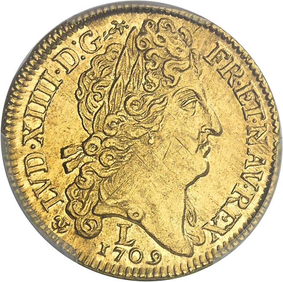 - FRANCE / ROYAL Louis XIV (1643-1715). Louis d’or au soleil 1709, L, Bayonne.