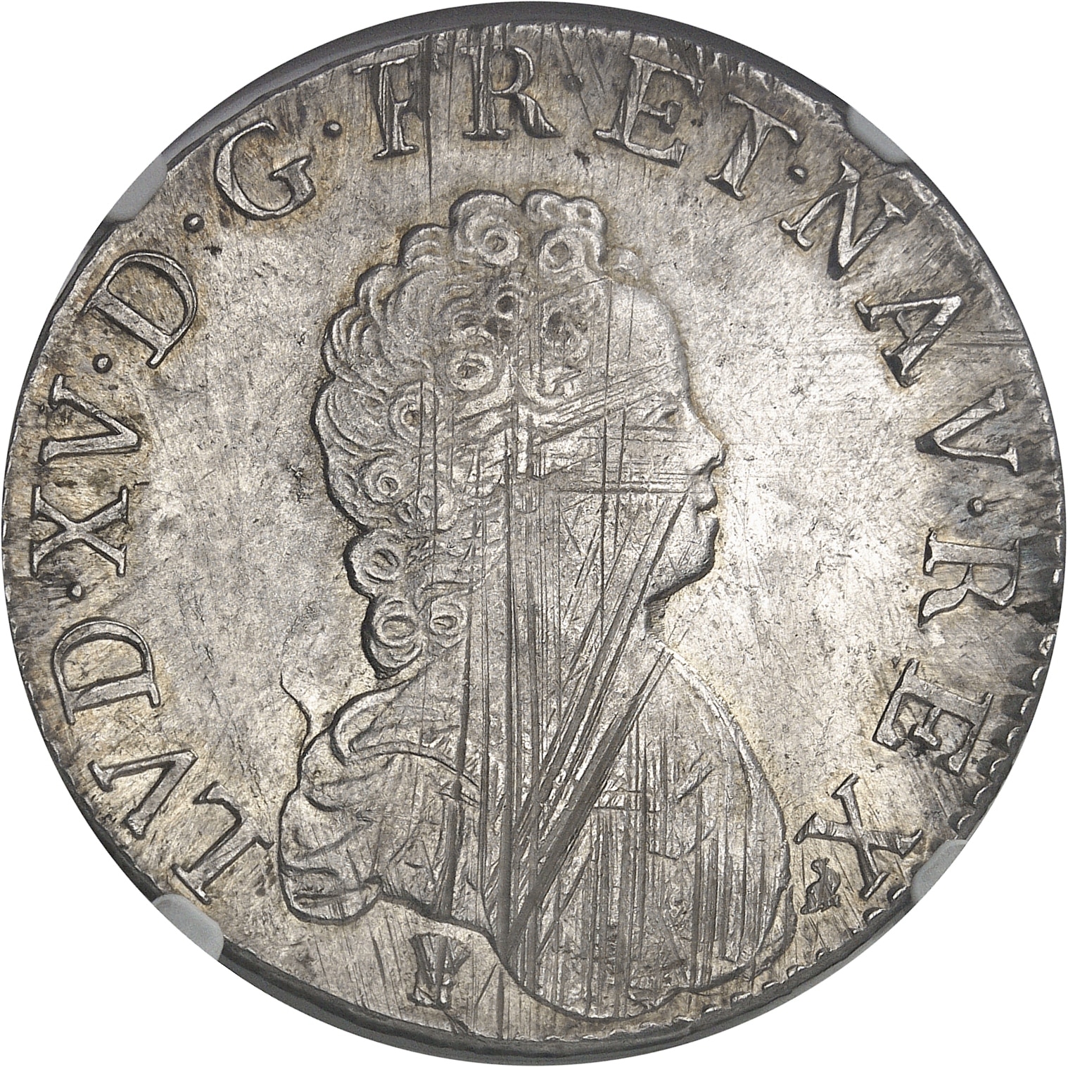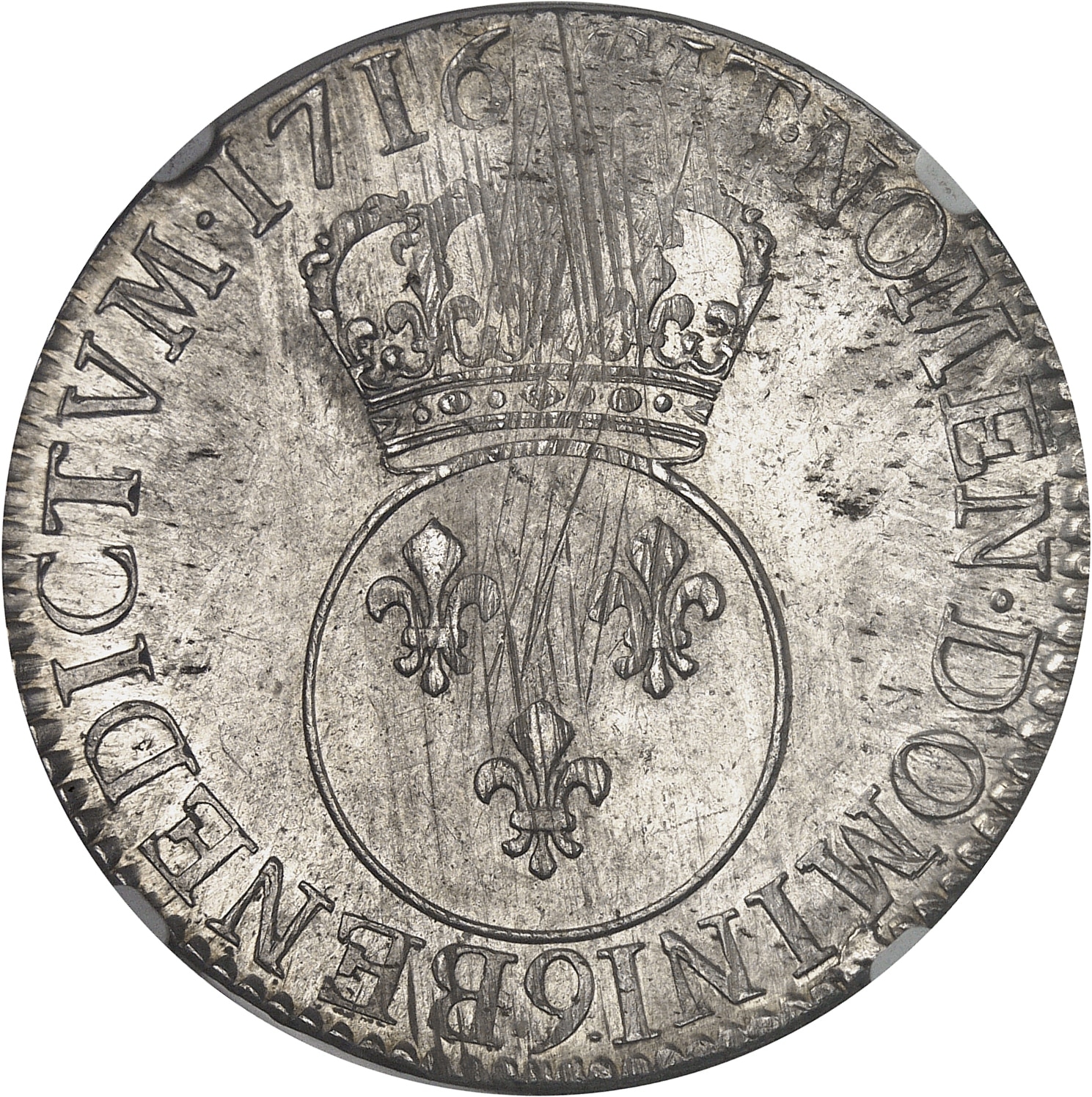 - FRANCE / ROYAL Louis XV (1715-1774). Écu dit Vertugadin, flan neuf 1716, 9, Rennes.