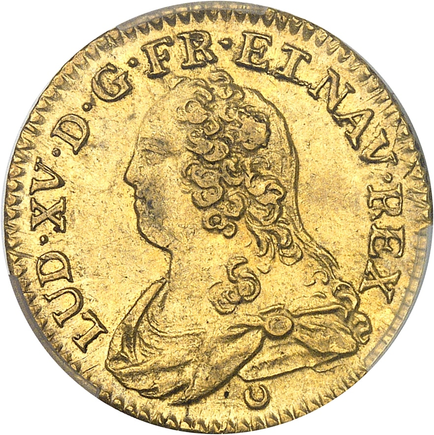 Av. LUD. XV. D. G. FR. ET. NAV. REX. Buste à gauche du Roi, drapé, la tête nue ; au-dessous (différent).