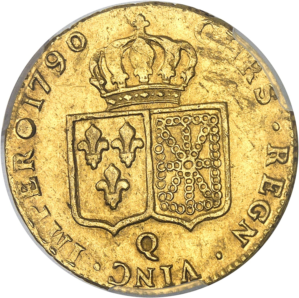 - FRANCE / ROYAL Louis XVI (1774-1792). Double louis d’or à la tête nue 1790/89, Q, Perpignan.