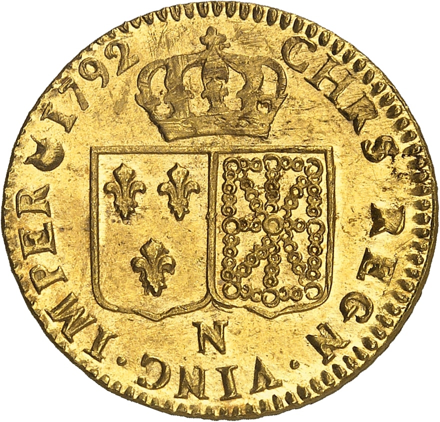 - FRANCE / ROYAL Louis XVI (1774-1792). Louis d’or à la tête nue 1792, N, Montpellier.
