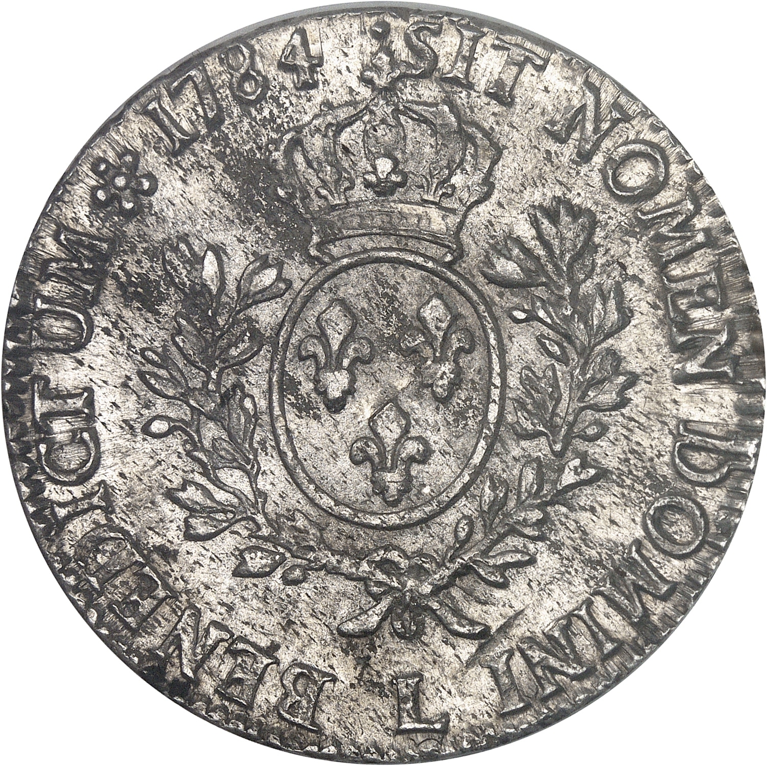 - FRANCE / ROYAL Louis XVI (1774-1792). Écu aux rameaux d’olivier 1784, L, Bayonne.