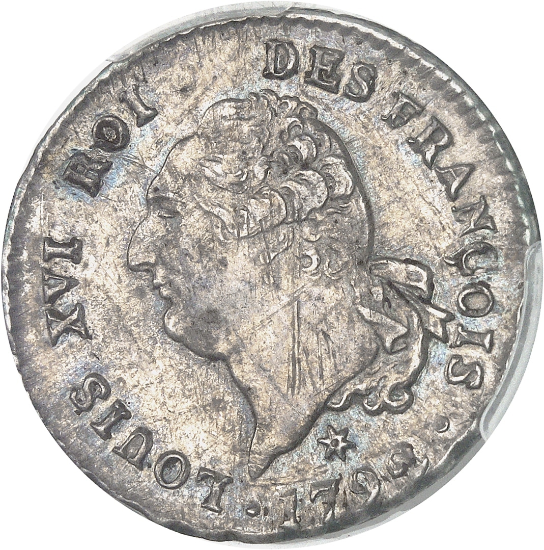 Av. LOUIS XVI ROI DES FRANÇOIS. Tête à gauche du Roi, les cheveux noués par un ruban sur la nuque. Au-dessous (différent) (date).
