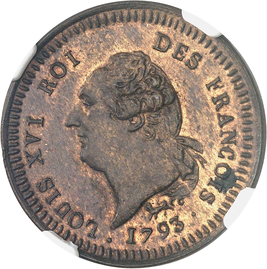 Av. LOUIS XVI ROI DES FRANCOIS. Tête à gauche du Roi, les cheveux noués par un ruban sur la nuque. Au-dessous (date) (différent).