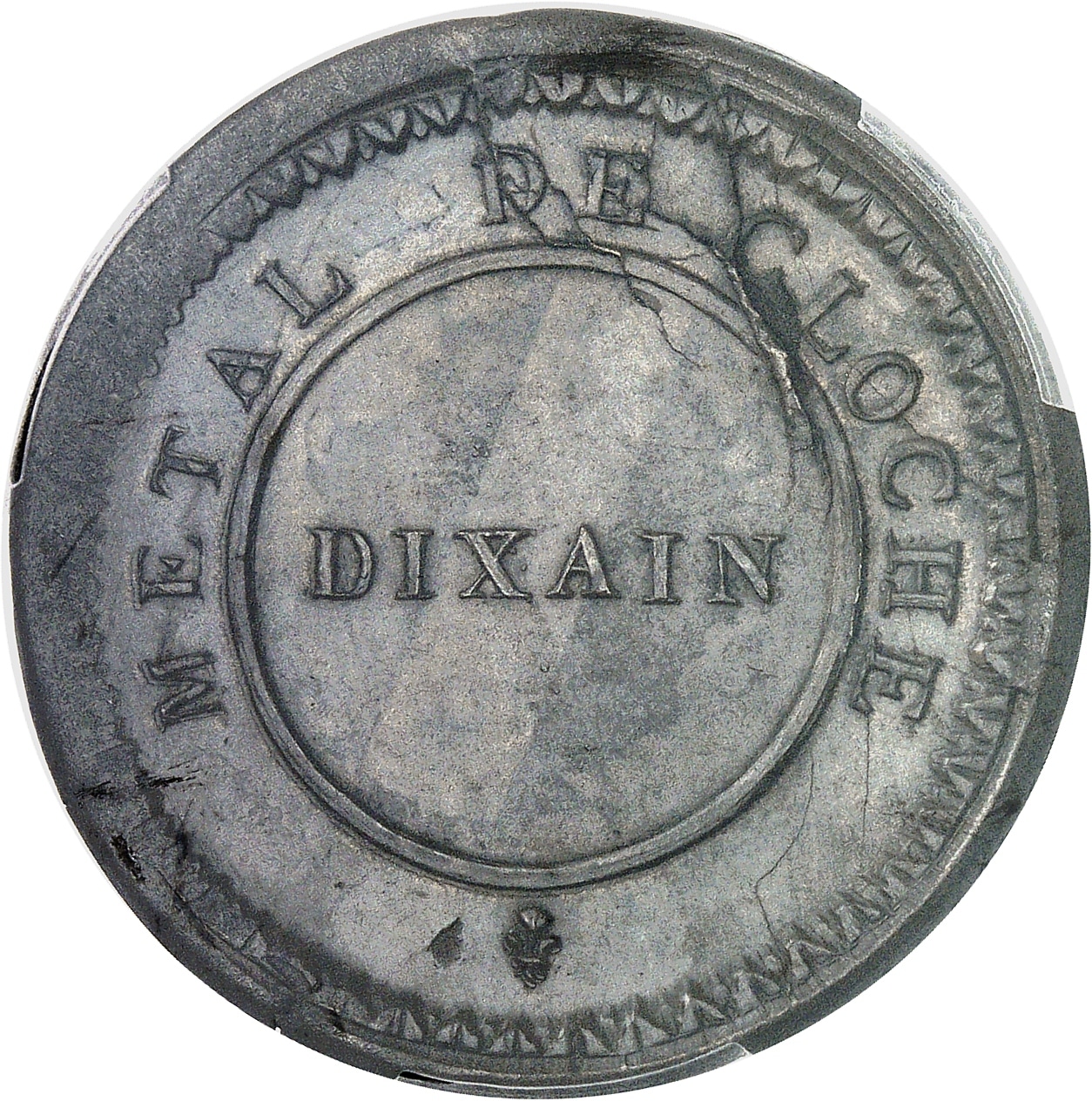 Av. METAL DE CLOCHE. Dans un cercle : DIXAIN ; petite fleur de lis à l’exergue.