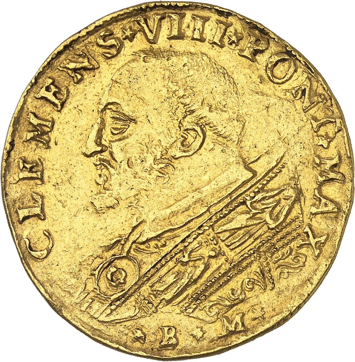 Av. CLEMENS* VIII* PONT* MAX. Buste à gauche du Souverain Pontife ; au-dessous (différent).