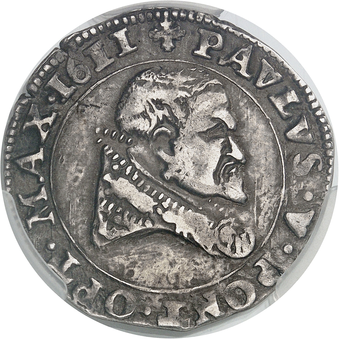 - FRANCE / FEUDAL Comtat Venaissin, Paul V (1605-1621). Demi-franc 3e type 1611, Avignon.