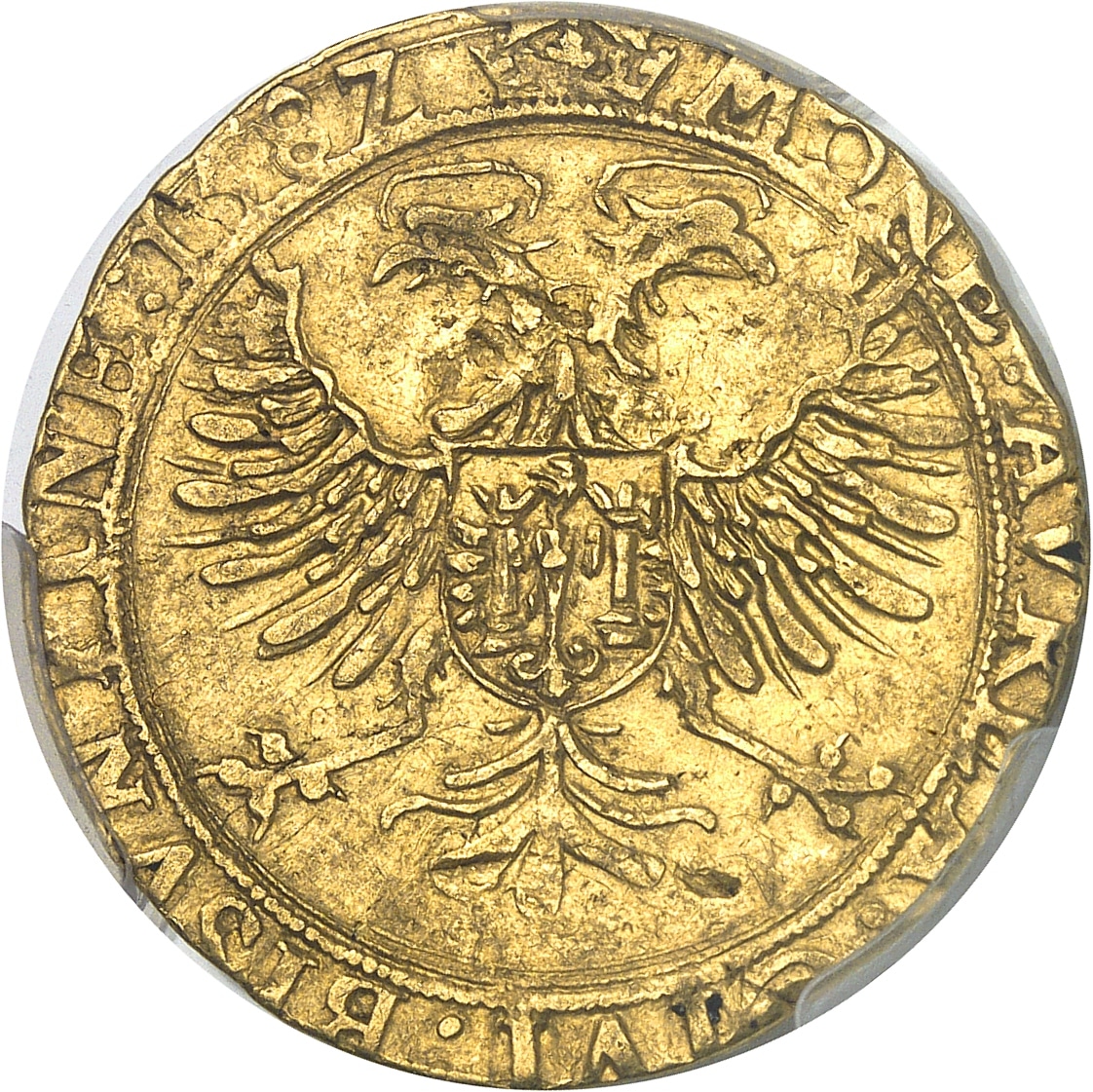 Rv. (à 12 h) MONE: AVREA: CIVI: BISVNTINE: (date). Aigle bicéphale éployé et couronnée avec les armes de Besançon en cœur.