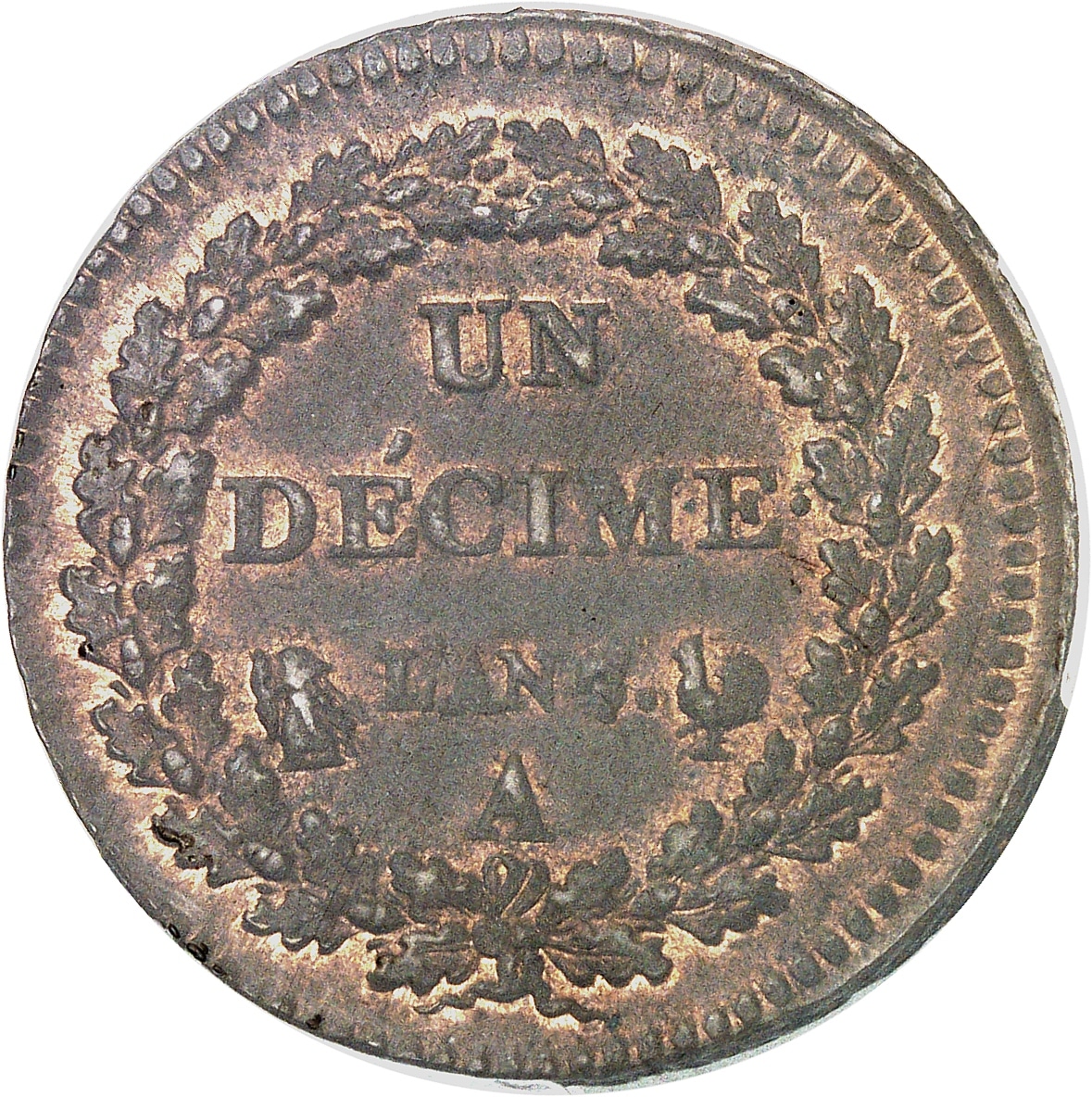Rv. Dans une couronne de chêne : UN DÉCIME L’AN (date) (atelier).
