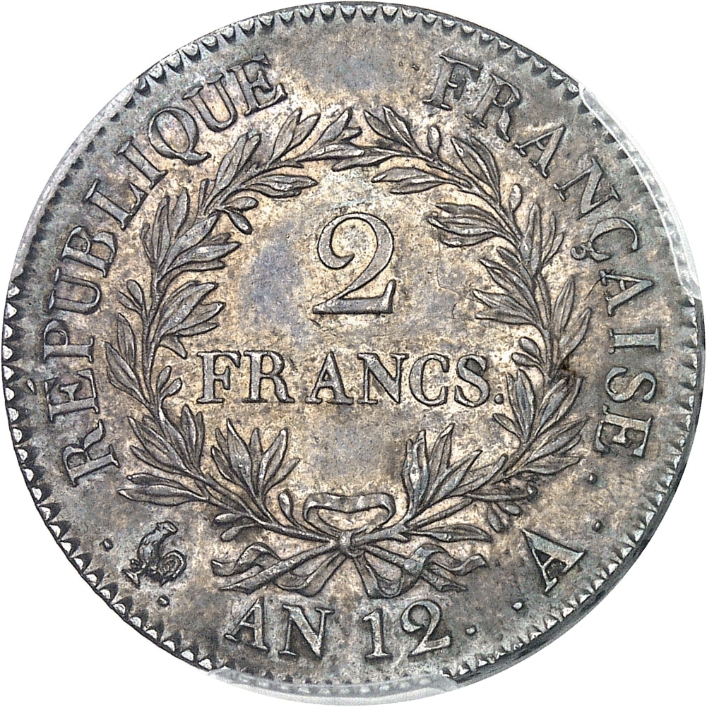 - Consulat (1799-1804). 2 francs Bonaparte An 12 (1803), A, Paris.