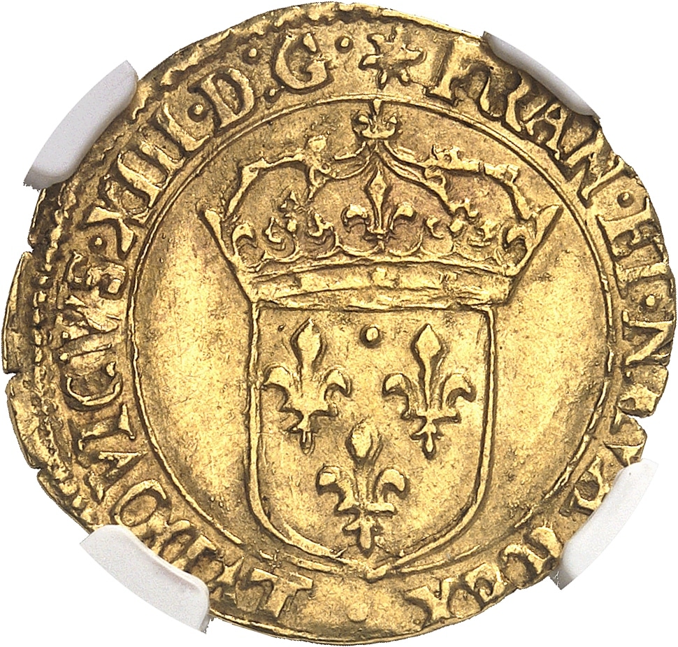 Rv. CHRISTVS. REGNAT. VINCIT. ET. IMP (date). Croix anillée fleurdelisée avec (atelier) en cœur.