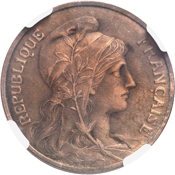 Av. REPUBLIQUE FRANÇAISE. Buste de la République à droite, avec bonnet phrygien et branche d’olivier, signature DANIEL-DUPUIS.