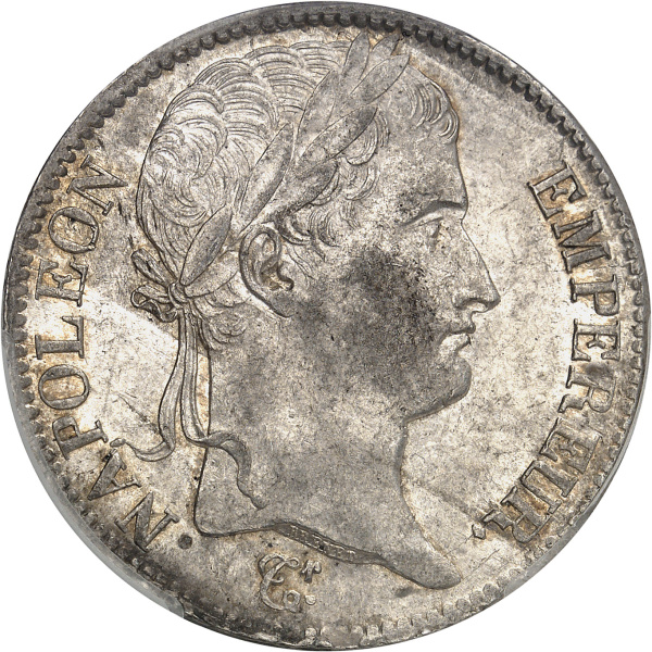 Rv. EMPIRE FRANÇAIS. Dans une couronne formée de deux branches : 5 FRANCS, au-dessous (date) et (atelier).