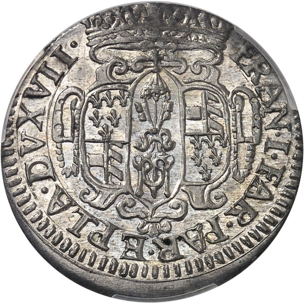 Av. FRAN. I. FAR. PAR. E PLA. DVX VII. Écu couronné.