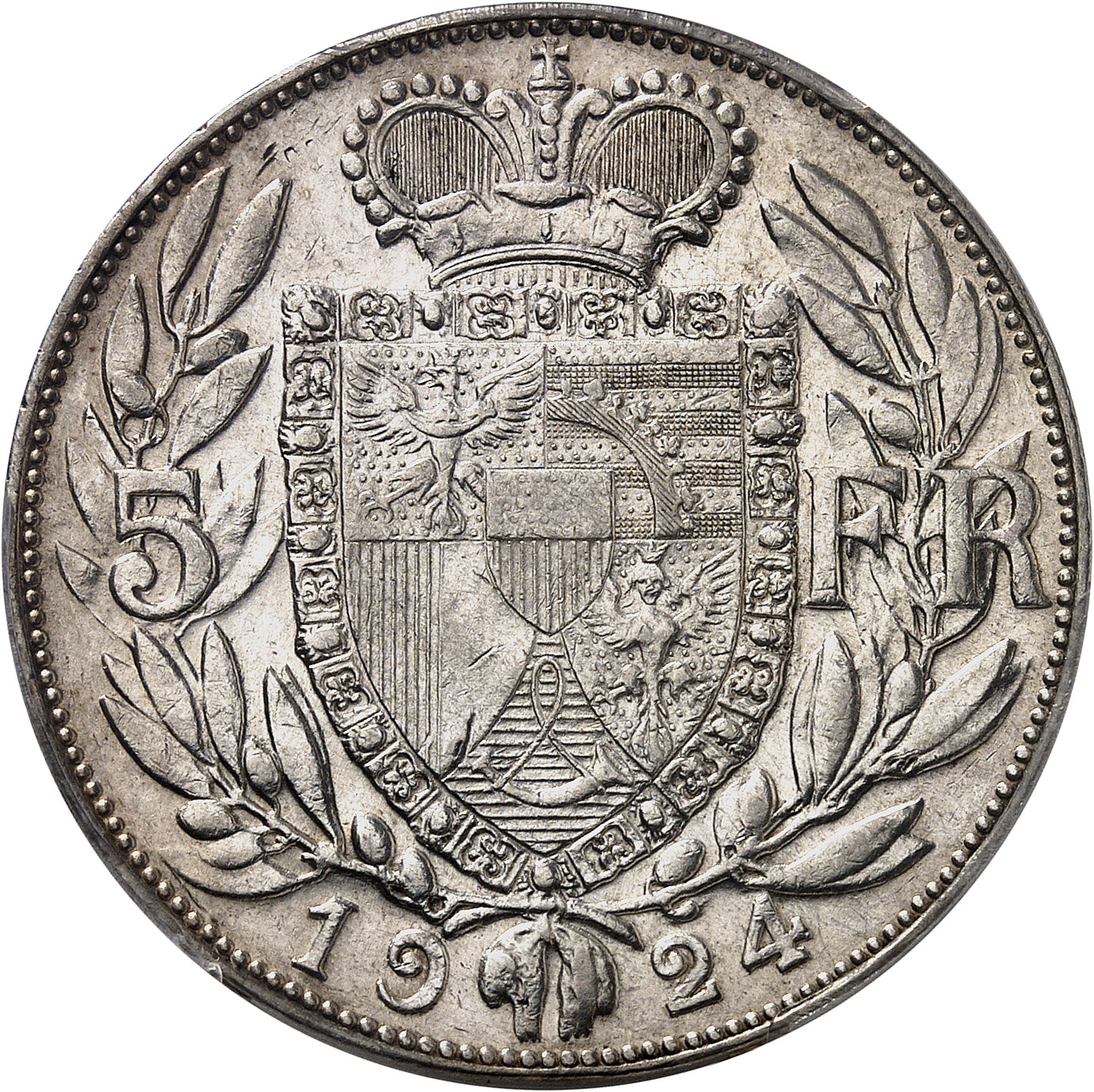 Jean II, prince (1858-1929). 5 francs 1924, Berne.