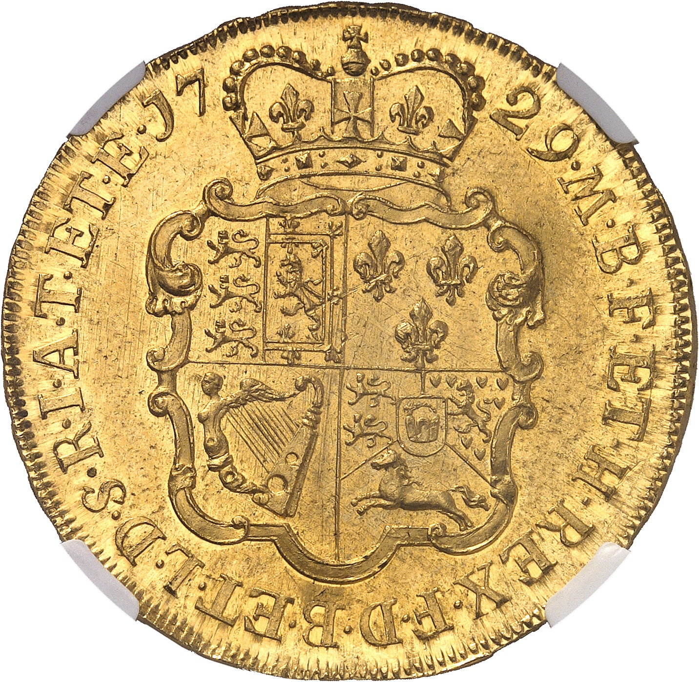 Georges II (1727-1760). 5 guinées, East India Company 1729 E.I.C., Londres.