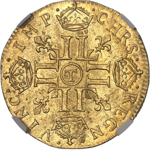 FRANCE / CAPÉTIENS Louis XIV (1643-1715). Louis d’or à la mèche longue 1653, T, Nantes.…