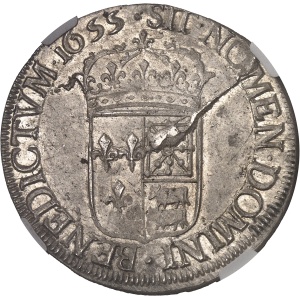 FRANCE / CAPÉTIENS Louis XIV (1643-1715). Écu de Béarn à la mèche longue 1655, Pau.…