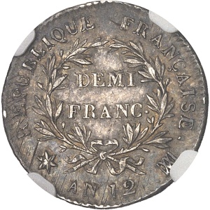 FRANCE Premier Empire / Napoléon Ier (1804-1814). Demi-franc calendrier révolutionnaire An 12 (1803-1804), I, …