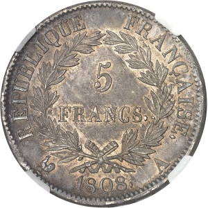 FRANCE Premier Empire / Napoléon Ier (1804-1814). 5 francs République 1808, A, Paris.…