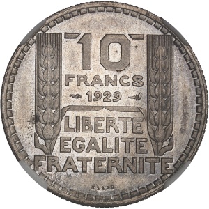 FRANCE IIIe République (1870-1940). Essai de 10 francs Turin, type adopté 1929, Paris.…