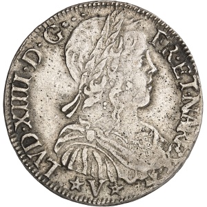 FRANCE / CAPÉTIENS - FRANCE / ROYAL Louis XIV (1643-1715). Écu à la mèche longue 1648, H, La Rochelle.…