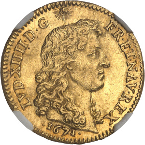 FRANCE / CAPÉTIENS - FRANCE / ROYAL Louis XIV (1643-1715). Louis d’or juvénile lauré 1671, L, Bayonne.…