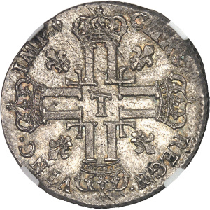 FRANCE / CAPÉTIENS - FRANCE / ROYAL Louis XV (1715-1774). Écu aux rameaux d’olivier 1728, V, Troyes.…