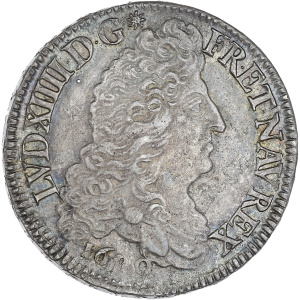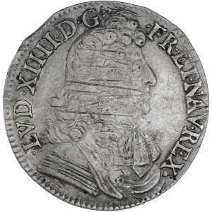 FRANCE / CAPÉTIENS - FRANCE / ROYAL Louis XIV (1643-1715). Écu à la perruque avec buste drapé à l’antique, tra…