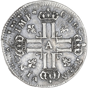 FRANCE / CAPÉTIENS - FRANCE / ROYAL Louis XV (1715-1774). Écu dit Vertugadin, flan neuf 1717, Y, Bourges.…